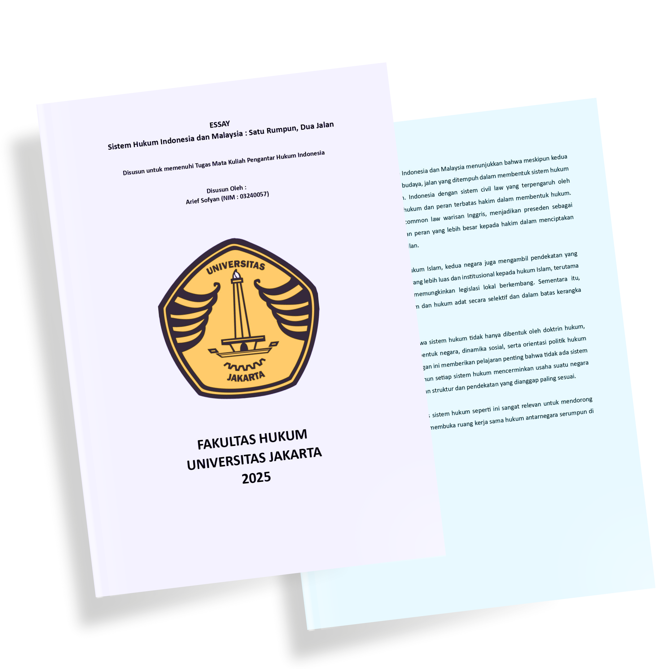 Essay ini disusun oleh Arief Sofyan (03240057), mahasiswa Fakultas Hukum Universitas Jakarta, sebagai bagian dari tugas mata kuliah Pengantar Hukum Indonesia